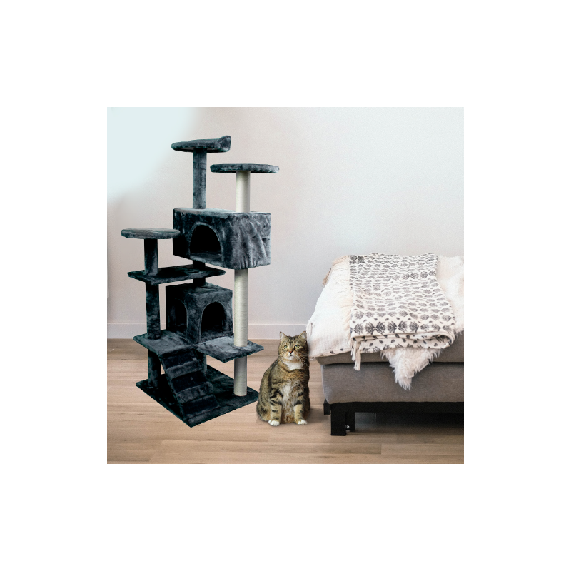 Árvore arranhador para gatos | Grande | 4 alturas | 50 x 50 x 170 cm | Cinzento | Até 10kg | Tom | Mobiclinic