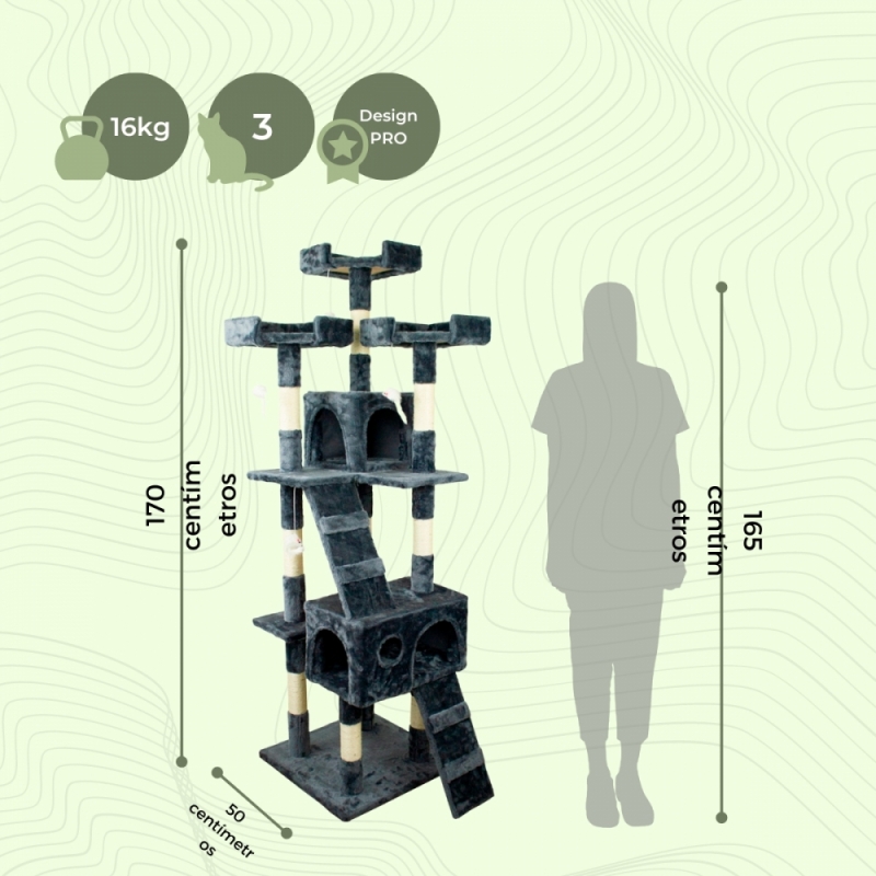 DETALHES DO PRODUTO: 50x50x170cm Corda de sisal, tecido macio, tábuas de madeira Cor cinza escuro. Peso: 16 kg.