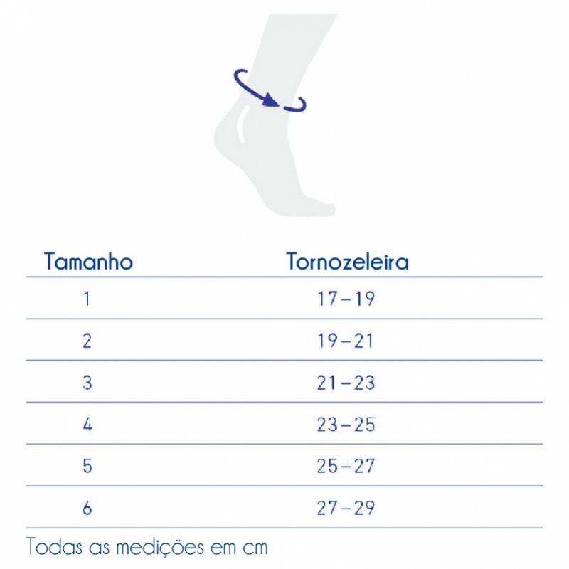 O tamanho depende do contorno do tornozelo em centímetros.