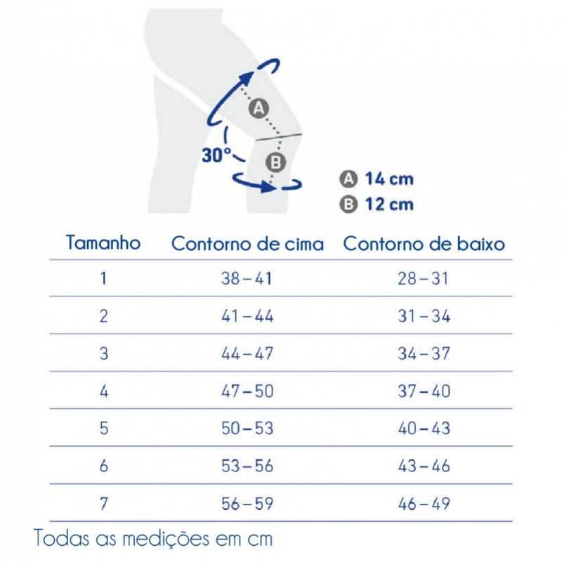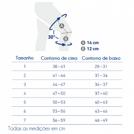 O tamanho depende do contorno da coxa, sendo a primeira medição o contorno superior e a segunda o contorno inferior.