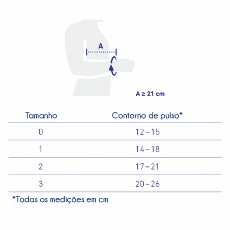 O tamanho é baseado na circunferência do pulso em centímetros.