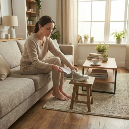 - Facilita uma distribuição homogênea de cargas no pé. Amortecimento do impacto do pé contra o solo.