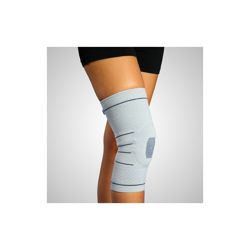 Joelheira elástica com rótula fechada. Fabricado em tecido elástico e com formato anatômico.