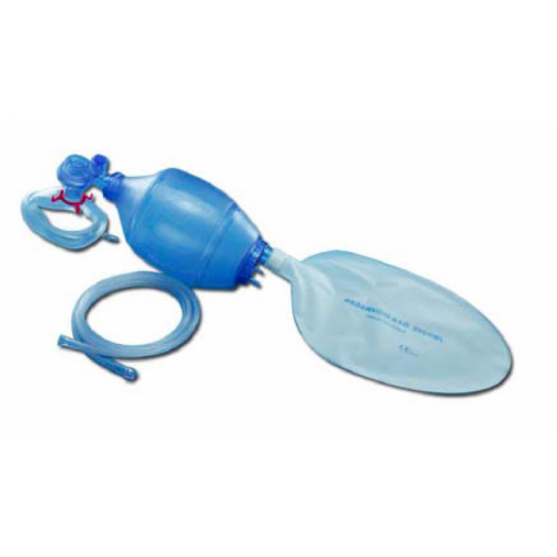 Reanimador manual descartável para adultos feito de PVC. Sem látex.