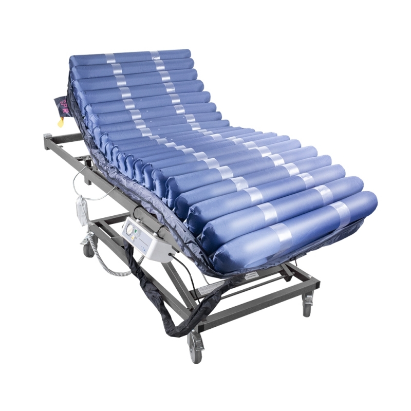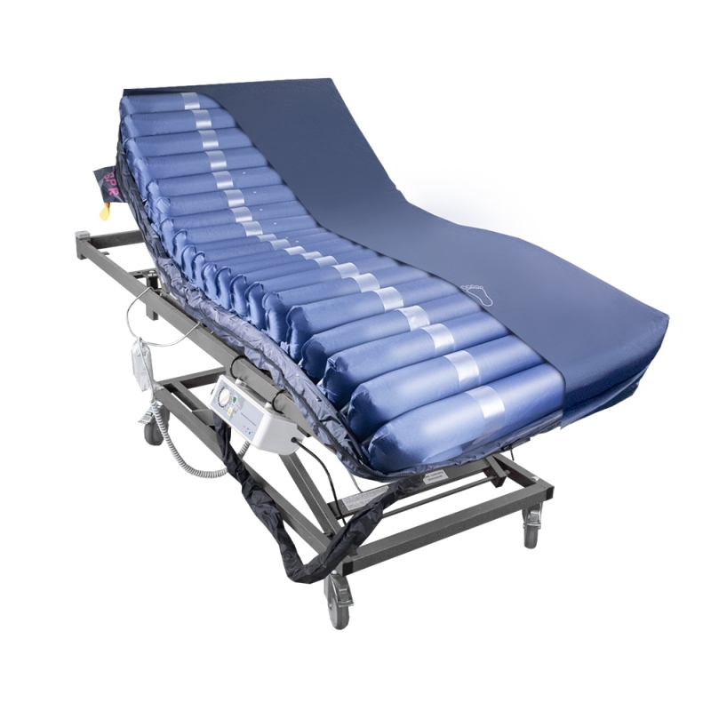 Este colchão de células de ar é um dos mais completos e eficazes do mercado, com um sistema eficiente que alterna entre ciclos terapêuticos móveis e estacionários. O ajuste de pressão deste colchão de ar é excelente, pois possui 20 células individuais que inflam e desinflam alternadamente em ciclos, proporcionando aos pacientes um alívio de pressão adequado.