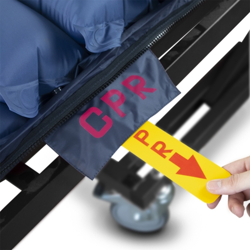 - O colchão de células de ar incorpora cintas de RCP para esvaziar o colchão mais rapidamente em caso de emergência.
