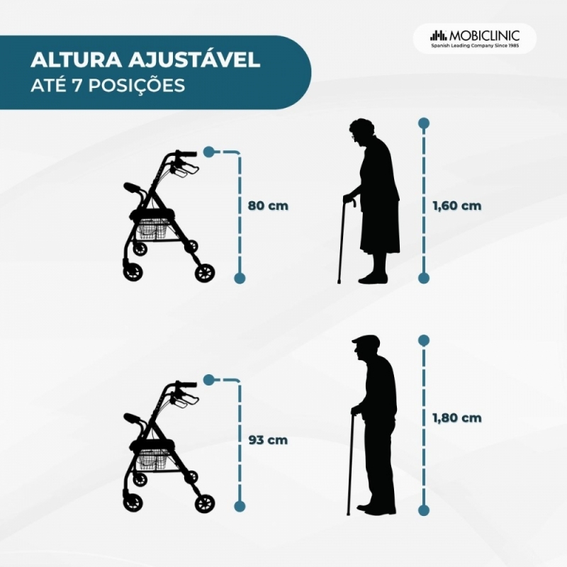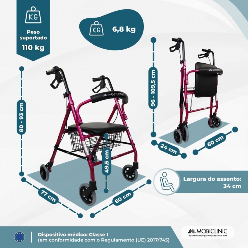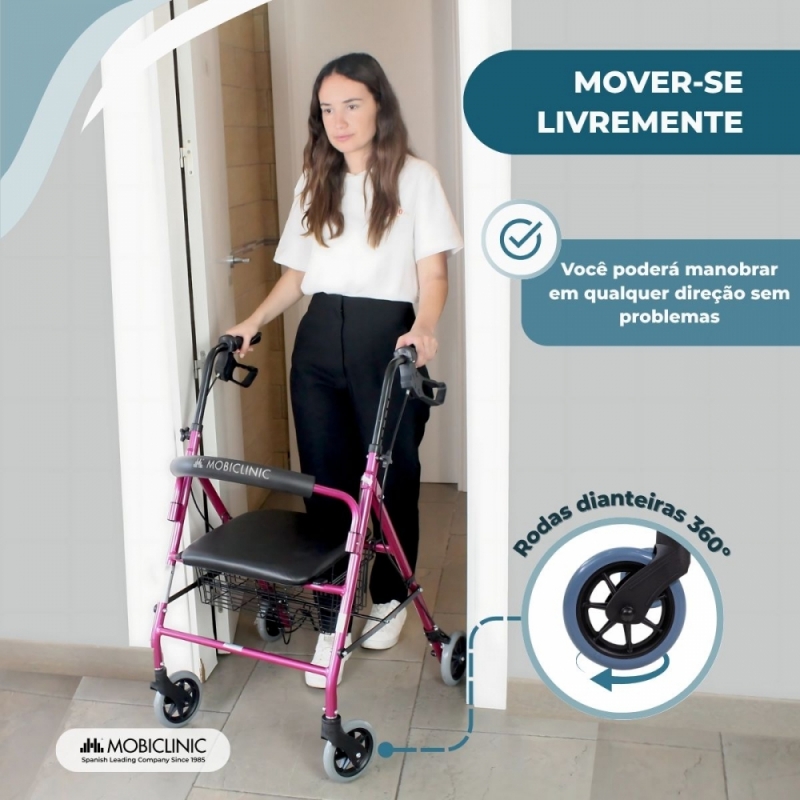 É um andador para adultos com um design inovador e leve, que oferece excelente mobilidade e estabilidade ao caminhar. Fabricado em alumínio, proporciona grande resistência e agilidade nos movimentos. As suas quatro rodas sólidas foram concebidas para ultrapassar confortavelmente pequenos obstáculos na estrada, tanto no interior como no exterior, sem qualquer risco de furos.