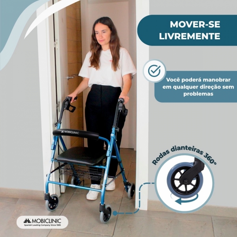 É um andarilho adulto com um design inovador e leve, que oferece excelente mobilidade e estabilidade ao caminhar. Fabricado em alumínio, proporciona grande resistência e agilidade nos movimentos. As suas quatro rodas maciças foram concebidas para ultrapassar confortavelmente pequenos obstáculos na estrada, tanto no interior como no exterior, sem qualquer risco de furo.