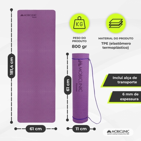 O TPE (elastômero termoplástico) é um material bastante flexível, ideal para alongamento de ioga e pilates, podendo ser esticado várias vezes garantindo sua durabilidade, qualidade e resistência . Além disso, este material é mais ecológico do que outros usados em tapetes de ioga tradicionais, como PVC ou NBR.