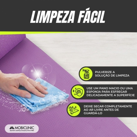 Terminado o exercício, este tapete é muito fácil de lavar, bastando apenas limpá-lo com um pano com água e sabão, enxaguar e finalmente secar com um pano seco. Dessa forma, você pode manter seu colchonete como primeiro dia.