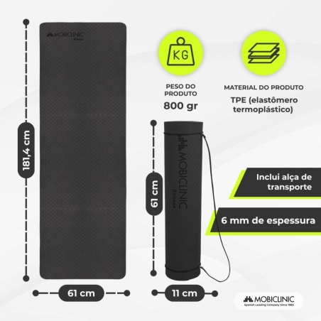 O TPE (elastômero termoplástico) é um material bastante flexível, ideal para alongamento de ioga e pilates, podendo ser esticado várias vezes garantindo sua durabilidade, qualidade e resistência . Além disso, este material é mais ecológico do que outros usados em tapetes de ioga tradicionais, como PVC ou NBR.