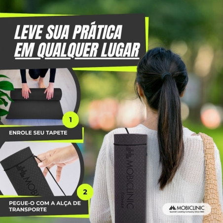 Além disso, este tapete para ioga e pilates inclui uma alça de transporte que permite ser movido com facilidade e conforto. Portanto, pode ser facilmente transportado para a academia, parques ou qualquer lugar onde você queira se exercitar.