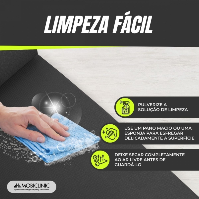 Terminado o exercício, este tapete é muito fácil de lavar, bastando apenas limpá-lo com um pano com água e sabão, enxaguar e finalmente secar com um pano seco. Dessa forma, você pode manter seu colchonete como primeiro dia.