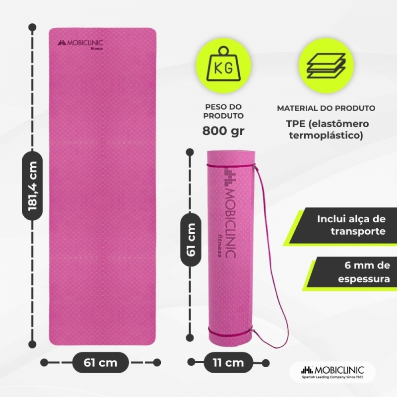 O TPE (elastômero termoplástico) é um material bastante flexível, ideal para alongamento de ioga e pilates, podendo ser esticado várias vezes garantindo sua durabilidade, qualidade e resistência . Além disso, este material é mais ecológico do que outros usados em tapetes de ioga tradicionais, como PVC ou NBR.