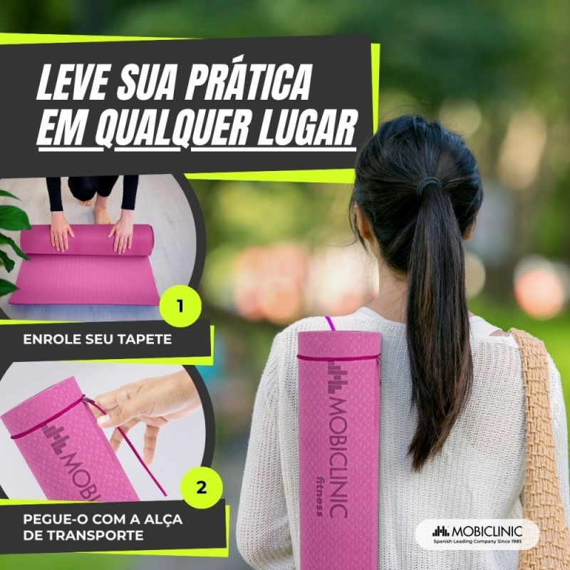 Além disso, este tapete para ioga e pilates inclui uma alça de transporte que permite ser movido com facilidade e conforto. Portanto, pode ser facilmente transportado para a academia, parques ou qualquer lugar onde você queira se exercitar.