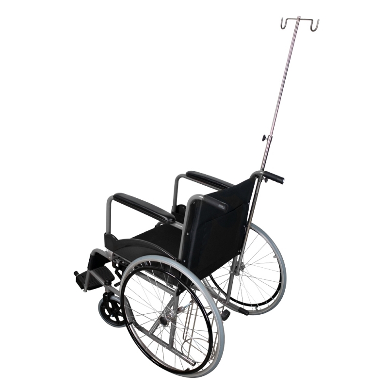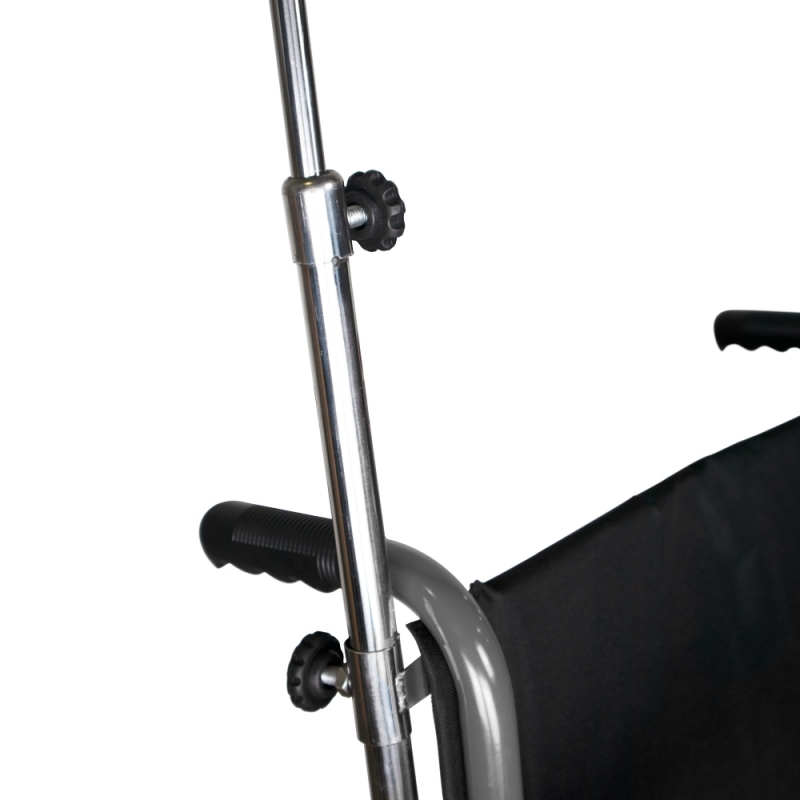 O suporte conta-gotas é um acessório que permite ao utilizador colocar o conta-gotas sobre a cadeira de rodas. A altura é ajustável de 77 a 142 cm, para que o utilizador a possa fixar de acordo com as suas necessidades. Além disso, a parte alta onde os gotejadores são suportados é de 24 cm.