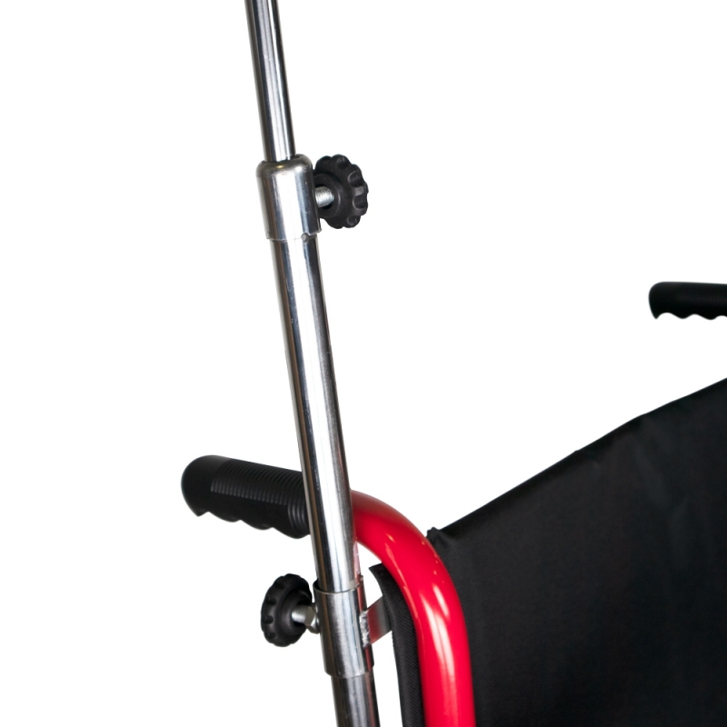 O suporte conta-gotas é um acessório que permite ao utilizador colocar o conta-gotas sobre a cadeira de rodas. A altura é ajustável de 77 a 142 cm, para que o utilizador a possa fixar de acordo com as suas necessidades. Além disso, a parte alta onde os gotejadores são suportados é de 24 cm.