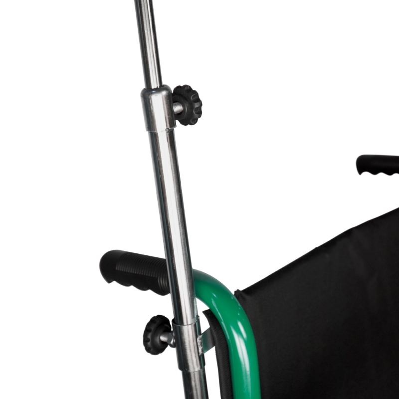 O suporte conta-gotas é um acessório que permite ao utilizador colocar o conta-gotas sobre a cadeira de rodas. A altura é ajustável de 77 a 142 cm, para que o utilizador a possa fixar de acordo com as suas necessidades. Além disso, a parte alta onde os gotejadores são suportados é de 24 cm.