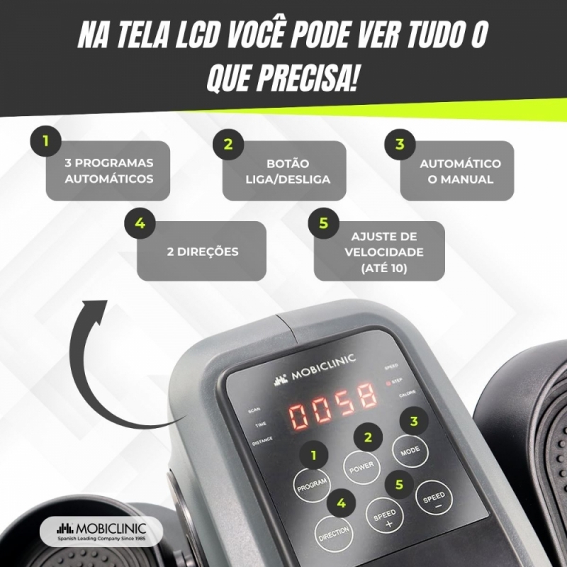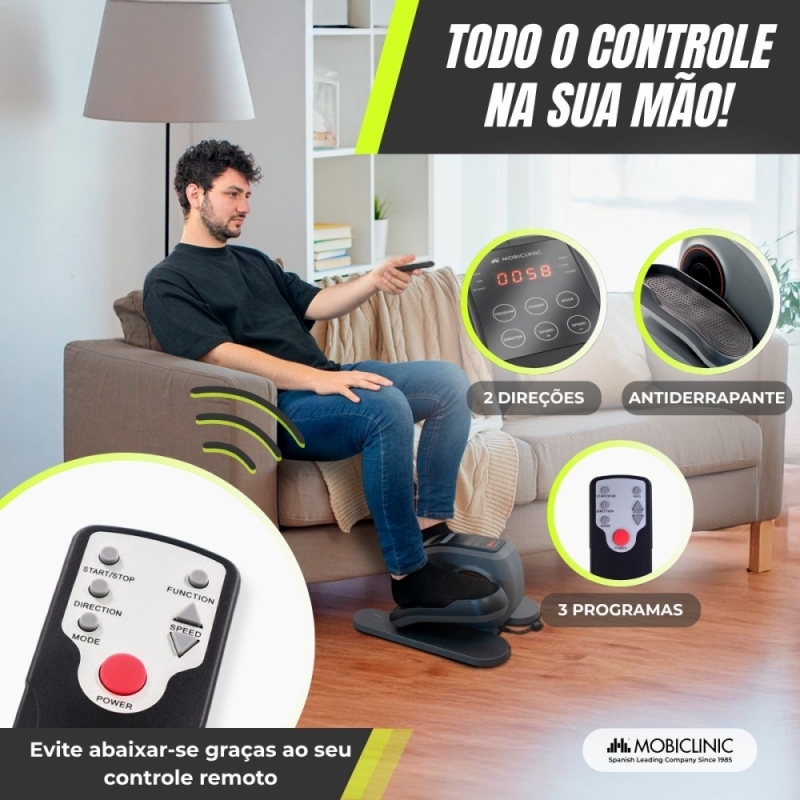 EXERCÍCIO COMPLETO: A mini bicicleta elíptica Veleta se tornou uma ótima opção para emagrecer, pois fortalece diversas partes do corpo, principalmente glúteos, pernas e quadril. Da mesma forma, este exercício pode ser complementado com movimentos de braços para obter um treino ainda mais completo. O exercício realizado com este mini elíptico elétrico tem baixo impacto no solo, algo que ocorre com outros treinos cardiovasculares. O mini elíptico Veleta é a melhor opção para melhorar a saúde cardiovascular, a coordenação, o equilíbrio e a flexibilidade, bem como para tonificar o corpo e reduzir o stress diário. Este mini elíptico foi projetado para uso no dia a dia , pois pode ser usado sentado no escritório ou em casa. Lembre-se de que só deve ser usado sentado.