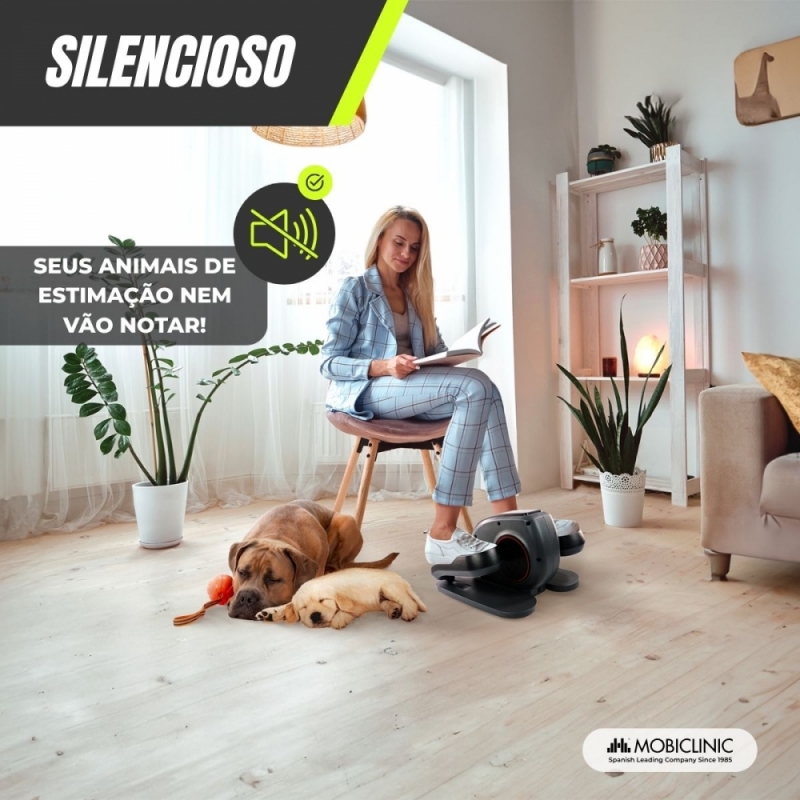 O exercício realizado com este mini treinador elíptico elétrico não tem um grande impacto direto no solo, algo que ocorre com outros treinos cardiovasculares. Além disso, este exercício é silencioso e seguro, pois incorpora grandes pedais anti deslizantes, concebidos para deixar a distância mínima entre os pés e favorecer uma posição correta durante o exercício. Também inclui quatro pontos antiderrapantes nos pés para uma total estabilidade e segurança durante o exercício.