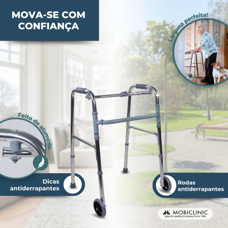 O andarilho com rodas para adultos será o seu maior aliado, graças às suas duas rodas dianteiras sólidas que permitirão uma maior agilidade e facilidade de movimento e duas terminações traseiras para evitar que o andarilho escorregue.