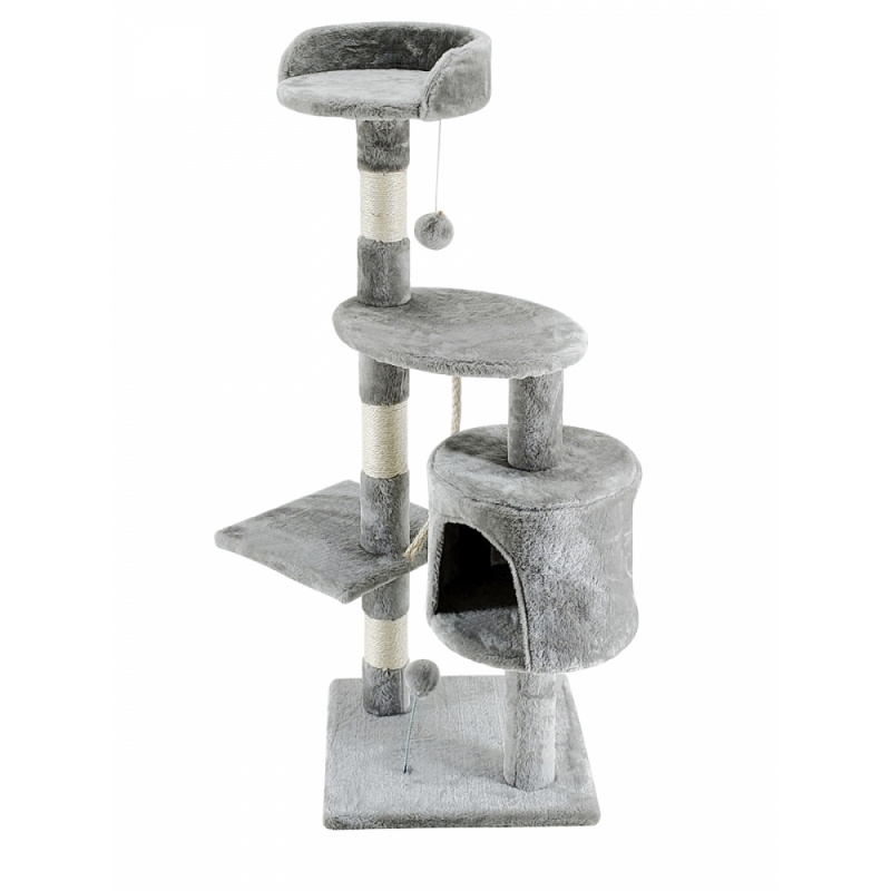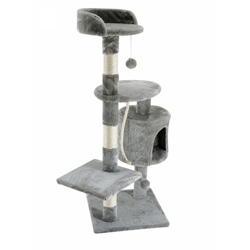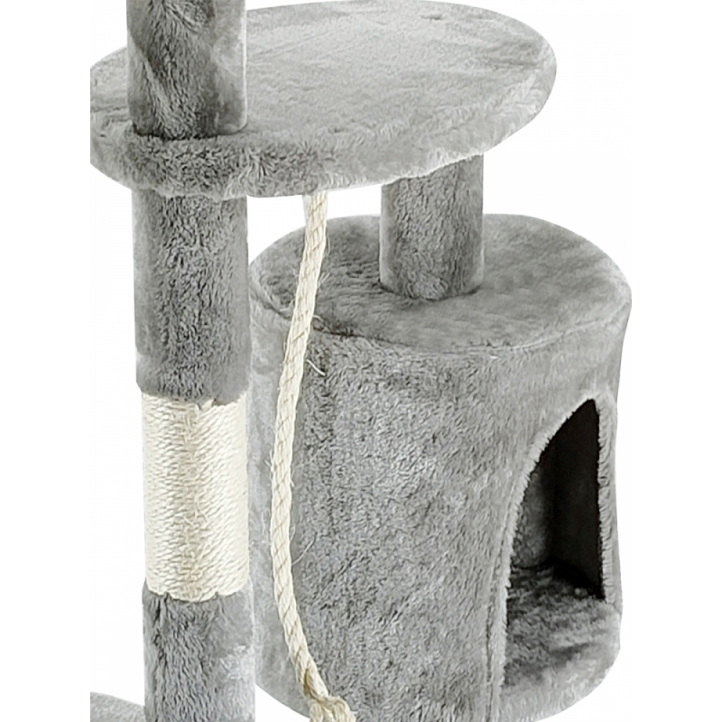 DETALHES DO PRODUTO: Medida: 40x40x112 cm. Corda de sisal, tecido macio, tábuas de madeira Cor cinza claro. Peso: 6kg.