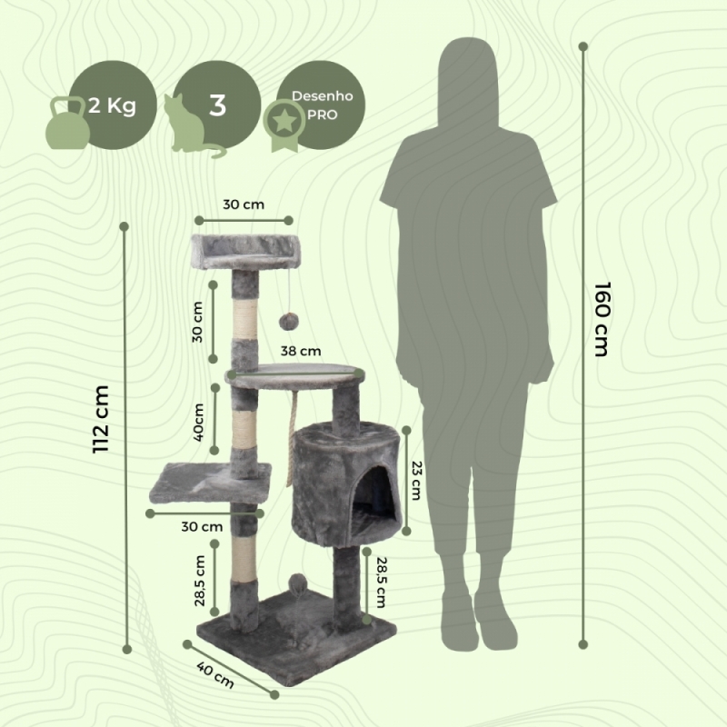 - Bolas de brincar: a estrutura conta com bolas para entreter e divertir o seu gato