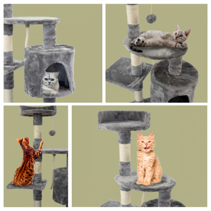 Estes brinquedos para gatos são irresistíveis. O seu gato vai esticar-se, polir as suas garras e fazer todo o tipo de movimentos divertidos. Pode também deitar-se confortavelmente sobre as superfícies suavemente almofadadas e desfrutar da melhor vista da casa ao mesmo tempo. Quando lhe apetecer esconder-se, retirar-se ou descansar, pode fazê-lo no abrigo acolhedor.