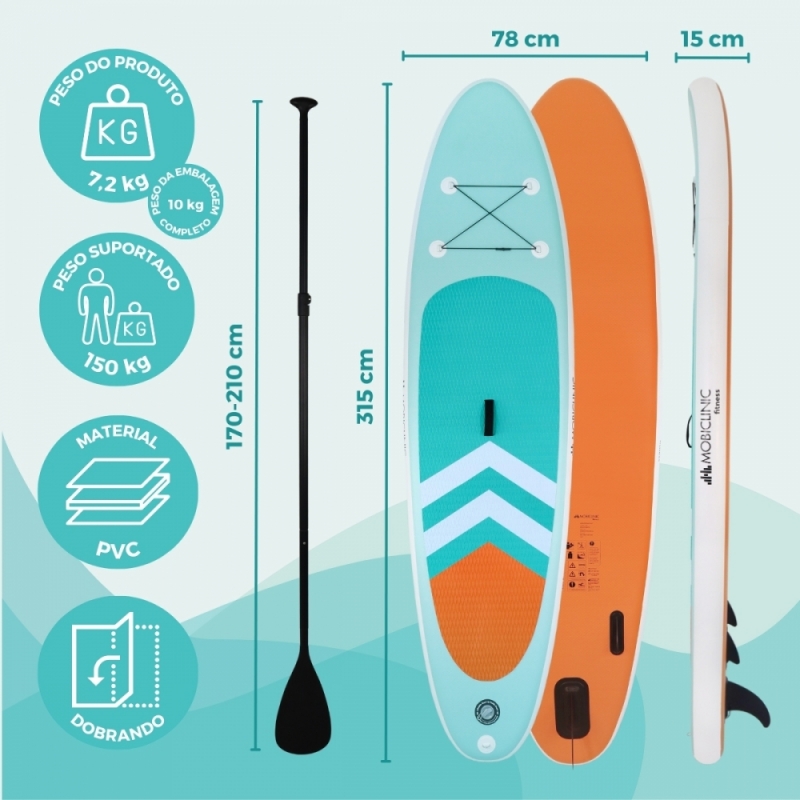 FÁCIL TRANSPORTE: Graças à mochila incluída , levar sua prancha de paddle surf para qualquer lugar é fácil e sem complicações. Leve e resistente, permite explorar novos destinos aquáticos sem se preocupar com transporte. Além disso, uma vez inflado, você pode transportá-lo facilmente com sua alça de transporte .