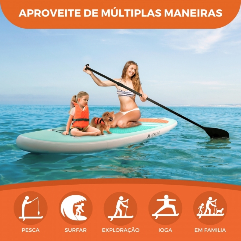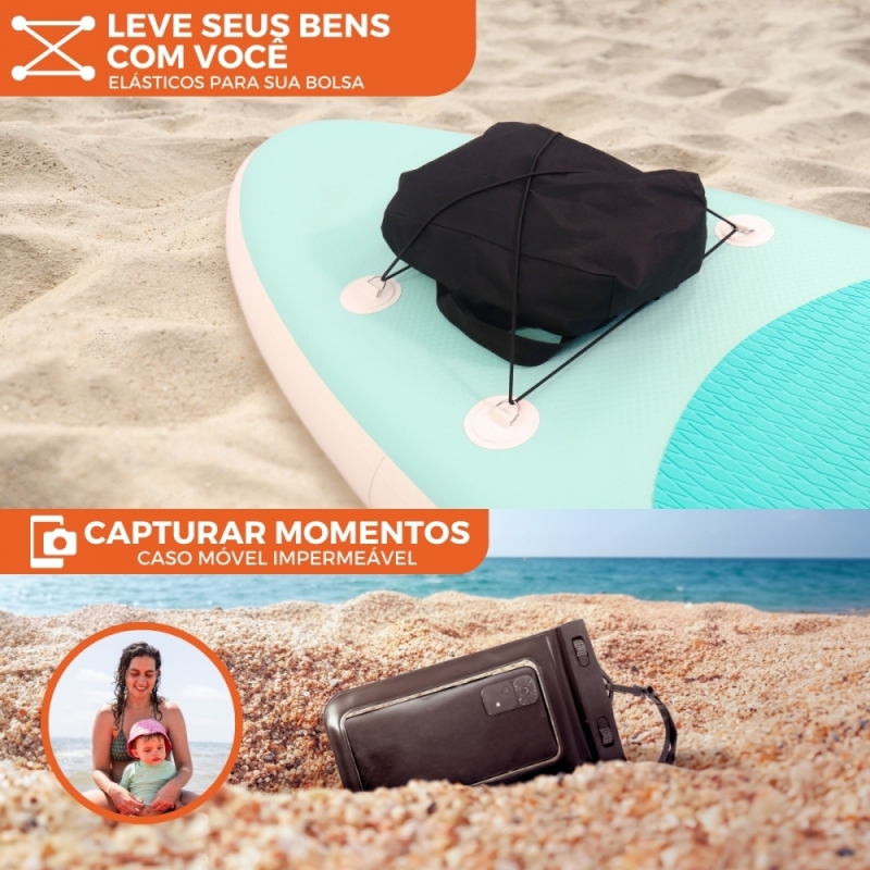 Versatilidade é fundamental com a prancha de stand up paddle inflável Lilo. A sua excepcional estabilidade torna-o perfeito para uma variedade de actividades aquáticas , desde ioga e turismo costeiro até levar consigo os seus filhos ou animais de estimação . Além disso, seu design robusto o torna a opção ideal para uma pesca tranquila ou para experimentar o surf em águas mais calmas. Com a capa de telefone aquática incluída, você pode capturar momentos inesquecíveis, como fotografar peixes enquanto pratica mergulho com snorkel .