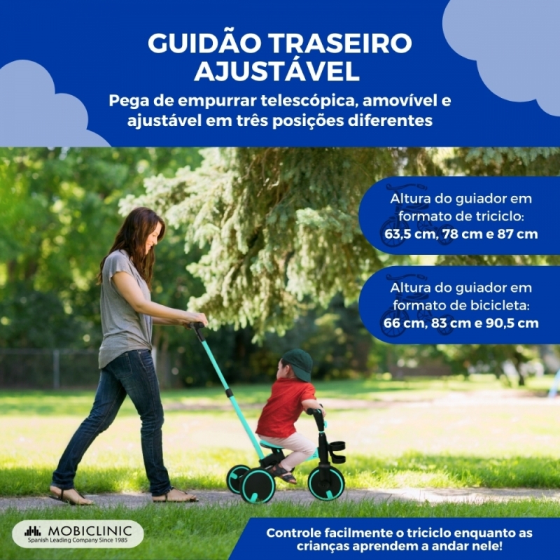 - Sua adaptabilidade e versatilidade: Suas peças ajustáveis e removíveis oferecem um triciclo que se transforma em bicicleta à medida que a criança cresce.