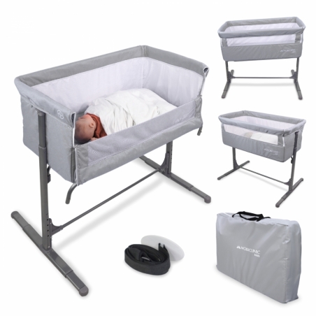 Este berço para dormir junto com o bebê é realmente confortável graças à sua abertura lateral , que permite ajustar a altura do colchão de acordo com a necessidade do seu filho. Além disso, é fácil de transportar e montar devido ao seu tamanho compacto e às duas rodas. Inclui uma base pequena, semi-firme e plana com 2 cm de espessura, e uma bolsa para facilitar a desmontagem e o armazenamento.