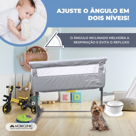 ALTURA AJUSTÁVEL: O berço para dormir junto ao bebê possui ajuste de altura em até 5 posições. Isso permite adaptar a altura do berço à cama dos pais, facilitando o acesso ao bebê.