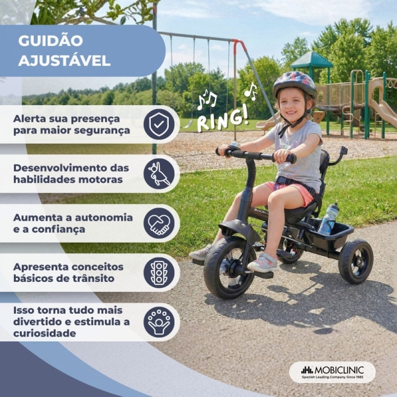 TRICICLO EVOLUCIONÁRIO 3 EM 1 : este triciclo adapta seu uso à medida que as habilidades dos nossos pequenos se desenvolvem. Do controle parental até se tornar um elemento autônomo de diversão e entretenimento. Concebido para crianças dos 18 meses aos 5 anos com peso máximo de 25 kg.