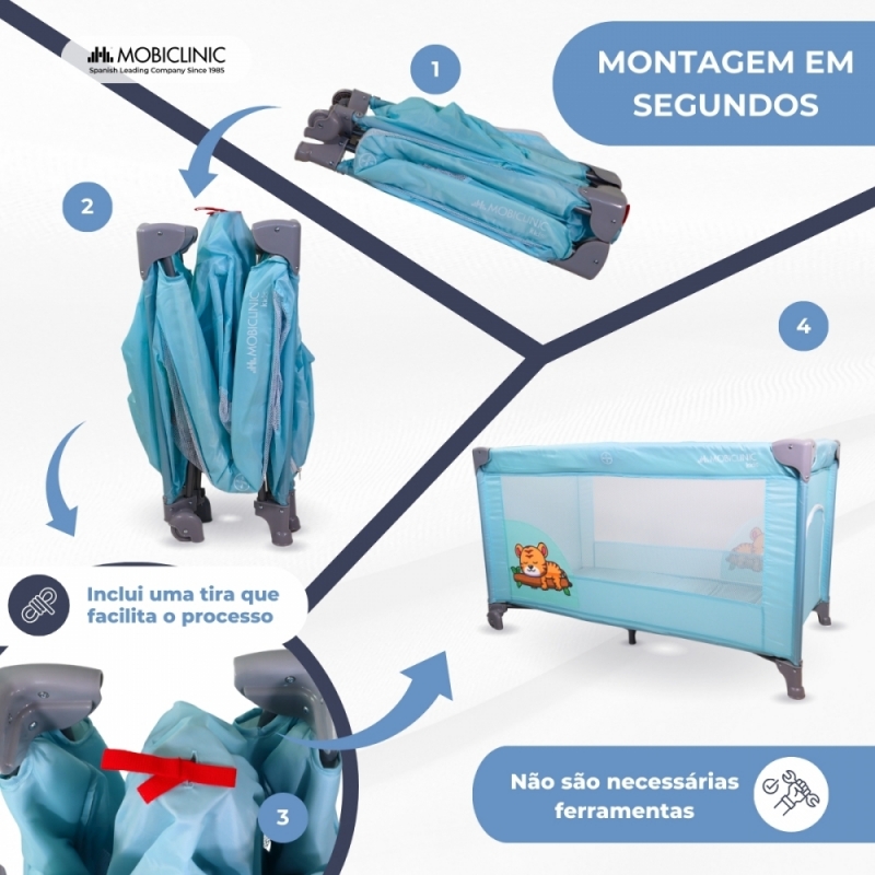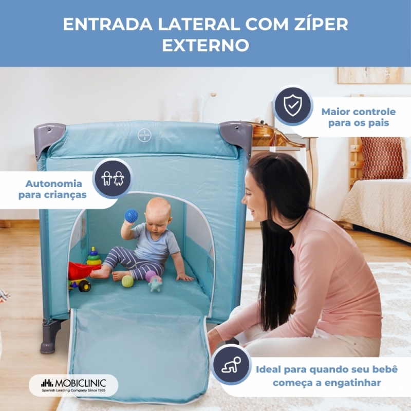 Este berço de viagem é ideal para famílias que viajam frequentemente ou têm uma segunda habitação. Também é uma opção eficaz deixar na casa dos avós, tios ou outros parentes, e até mesmo em quartos de trânsito para que o bebê possa brincar ou descansar alguns minutos em segurança sob a supervisão de um adulto.