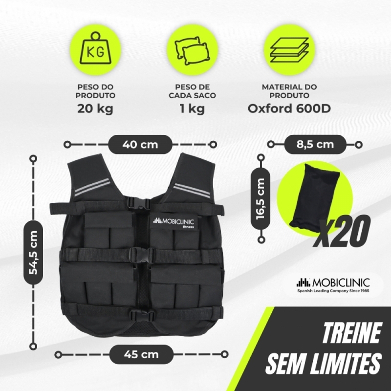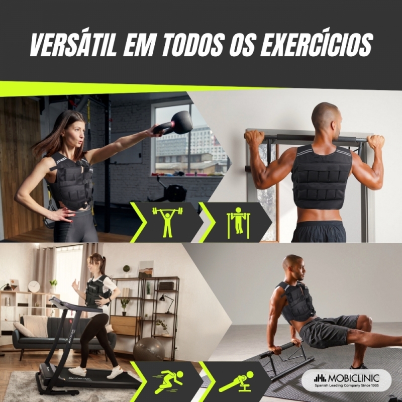 MUITOS EXERCÍCIOS: O colete com pesos é a ferramenta perfeita para levar seus treinos para o próximo nível. Sua capacidade de aumentar a intensidade significa que você pode incorporá-lo em uma ampla variedade de exercícios , como força, velocidade, saltos e treinamento de resistência. Desafie seus limites e alcance seus objetivos!