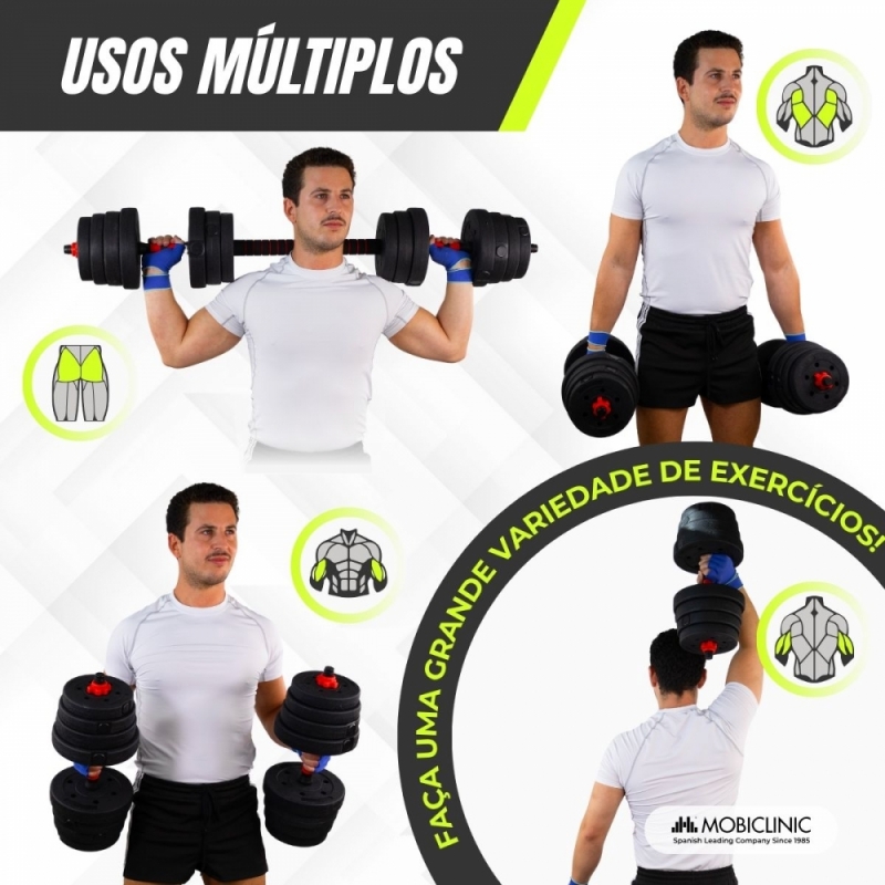 MULTIFUNCIONAL: Este par de halteres ajustáveis oferece dois modos de uso: o tradicional com halteres e o com barra. Com um único produto, você pode realizar vários exercícios para braços, costas, core e pernas sem a necessidade de vários acessórios. Este conjunto é ideal para quem busca variedade, intensidade e eficácia em seus treinos.