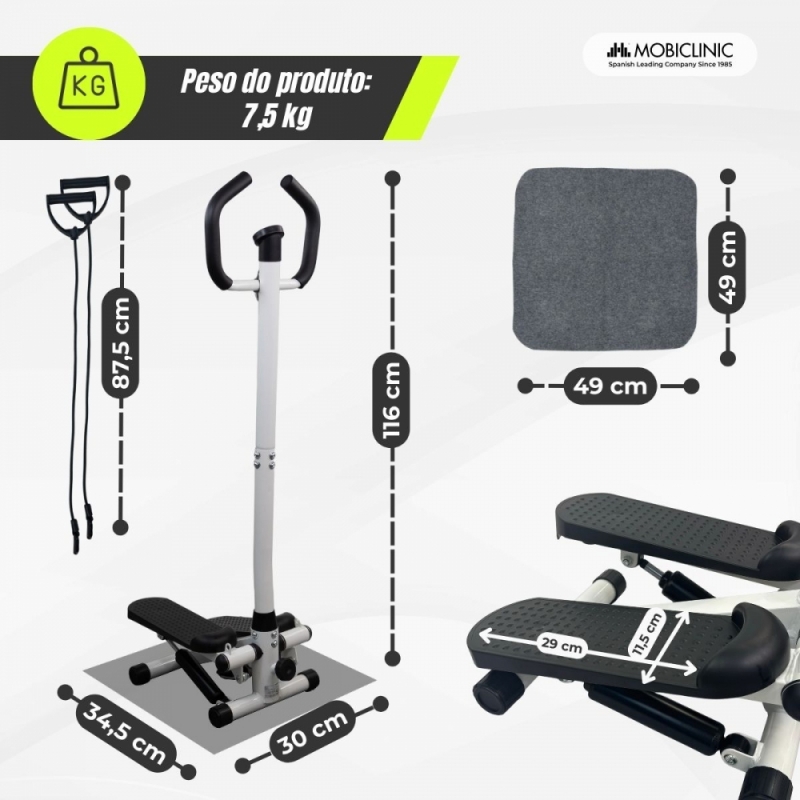 O stepper de braço Step-Pro é a melhor opção para quem busca manter a forma em casa. Sua estrutura permite trabalhar pernas, glúteos e braços simultaneamente, combinando exercícios cardiovasculares e tonificação muscular.