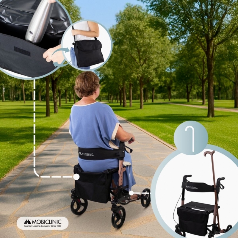 CONFORTÁVEL: Com este andador com assento, você pode descansar sempre que precisar e, com sua cesta, você pode carregar as compras e itens necessários. Ele também possui um suporte para bengala para facilitar o transporte.