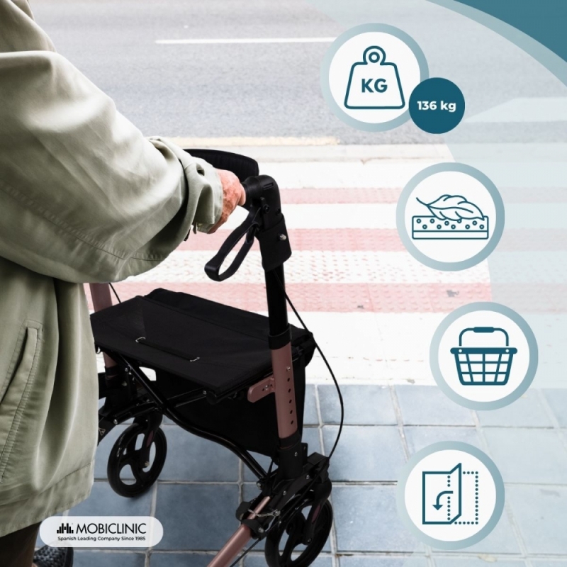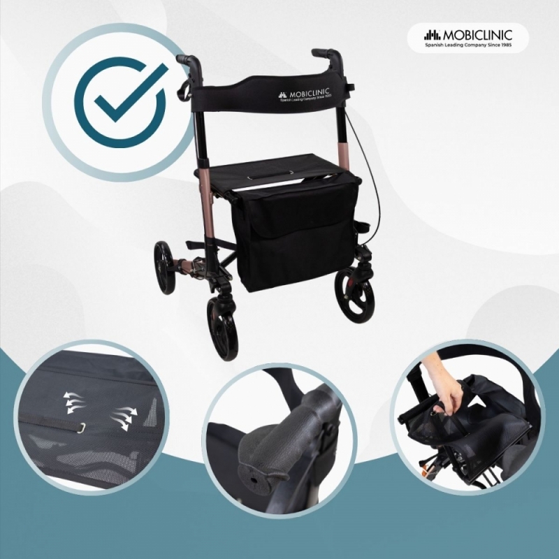 O design deste andador para idosos é elegante e permite que você o leve para qualquer lugar, graças à sua construção em alumínio com acabamento azul. O andador com assento é muito leve, pesando apenas 7,3 kg. Sua altura é ajustável de 83 a 95 cm, tornando-o rápido e fácil de adaptar às suas necessidades.
