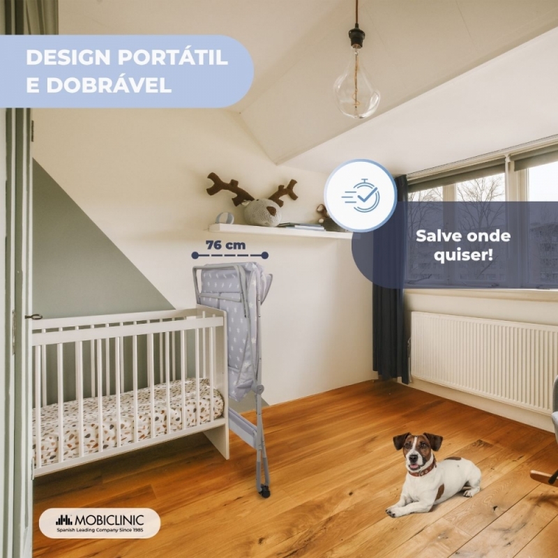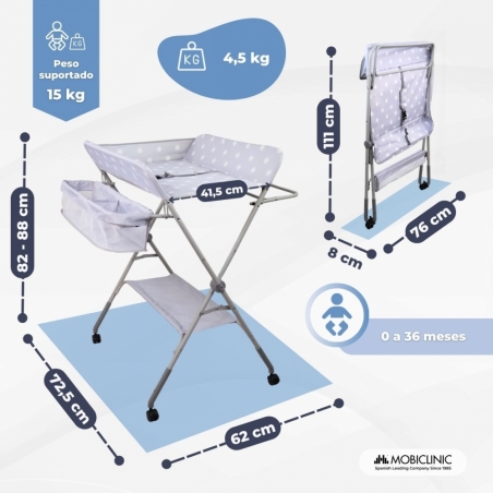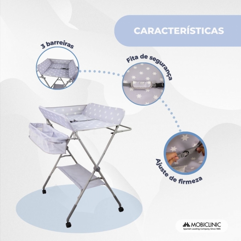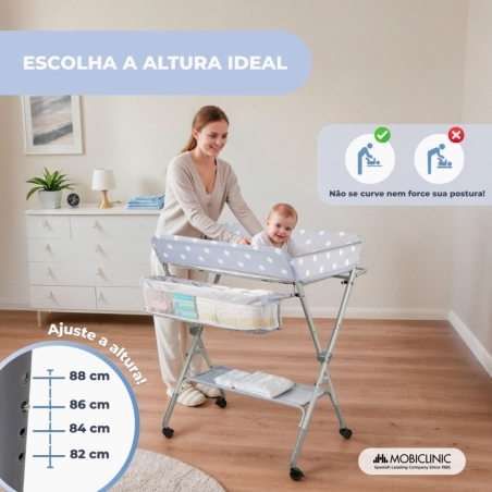 Uma de suas grandes vantagens é que pode ser ajustado em cinco alturas: 82, 84, 86, 88 e 90 cm, adaptando-se à altura e às necessidades de cada usuário e garantindo uma postura confortável durante o uso, com menos esforço e desconforto. Além disso, suas quatro rodas giratórias de 360° facilitam a movimentação do trocador, e seus freios oferecem maior estabilidade e segurança durante o uso.