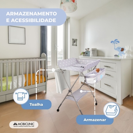 FUNCIONAL E DOBRÁVEL: Este trocador possui um cesto lateral de grande capacidade, um toalheiro e uma prateleira inferior com mais espaço para organizar todos os produtos de higiene do seu bebê. Ele se dobra facilmente, ocupando o mínimo de espaço, e sua capa é removível, permitindo uma limpeza ideal e eficaz.