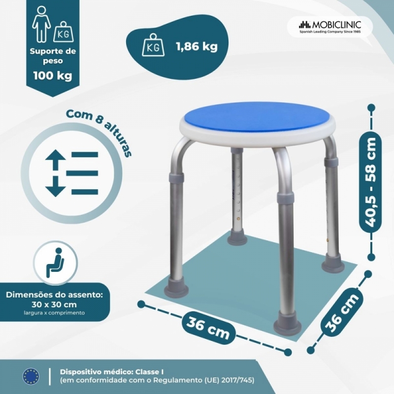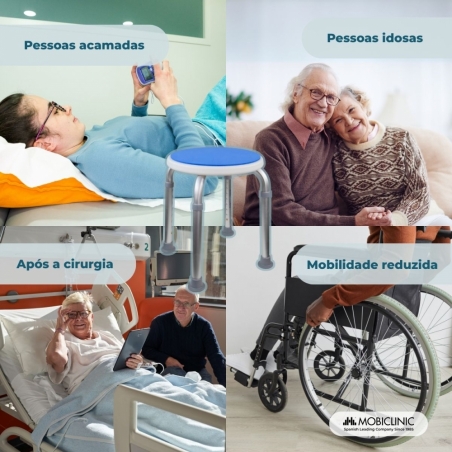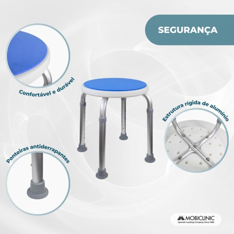 Este banco é leve e fácil de transportar, ideal para idosos ou pessoas com problemas de mobilidade que buscam apoio.