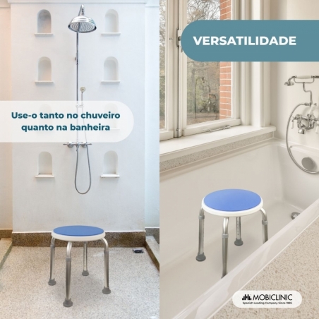 ESTÁVEL E RESISTENTE: A estrutura de alumínio deste banco de banho suporta o uso contínuo em ambientes úmidos e resiste à corrosão e ferrugem. Ele também possui pontas antiderrapantes que melhoram a aderência em pisos molhados e reduzem o risco de quedas.