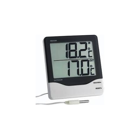 O termômetro digital indica a temperatura máxima e mínima dentro e fora. Portanto, pode ser útil para uso doméstico. É um instrumento para medir a temperatura exata, e tem uma faixa de temperatura interna: -10ºC + 50ºC e externa: -50ºC + 70ºC.