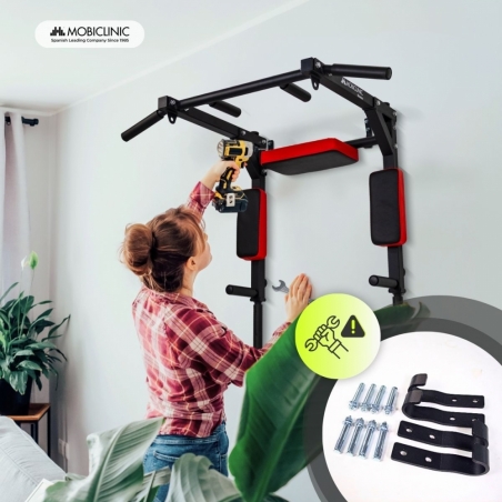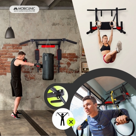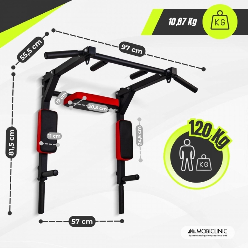A barra de pull-up Q2 para parede é um produto versátil, durável e confortável, indispensável para trabalhar a parte superior do corpo em casa. Seu design 2 em 1 permite que seja instalada em duas posições: uma posição inferior para elevações de pernas, paralelas e abdominais , e uma posição superior perfeita para pull-ups, flexões de barra fixa e exercícios para costas.