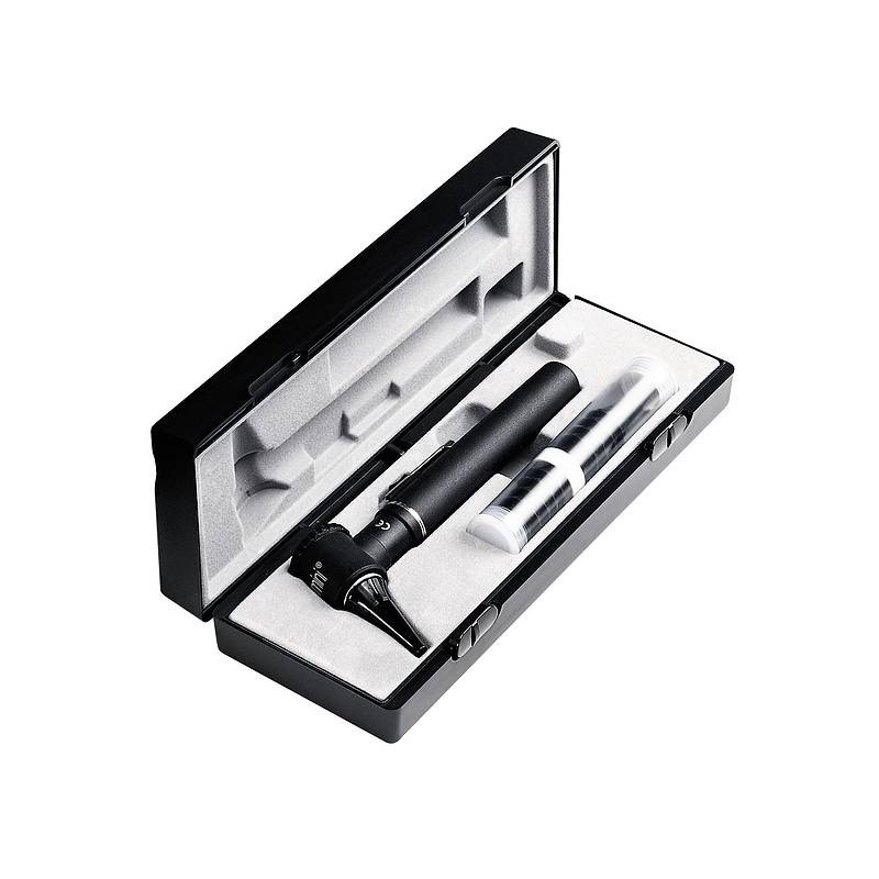 Os práticos otoscópios FO Ri-Mini servem para iluminar e explorar o canal auditivo. Um sistema de fibra ótica inovador permite a concentração ideal de luz. A iluminação direta oferece redução de reflexo minimizada e iluminação aprimorada. Desta forma, as áreas de difícil acesso podem ser iluminadas com uma luz semelhante à da luz do dia. Materiais excelentes e um processo de fabricação cuidadoso garantem alta confiabilidade em todos os exames. A caixa contém: Otoscópio. Tubo de plástico com cinco espéculos auriculares reutilizáveis de 2,5 mm e cinco de 4 mm. Alça para duas baterias AA. Pilhas não incluídas.