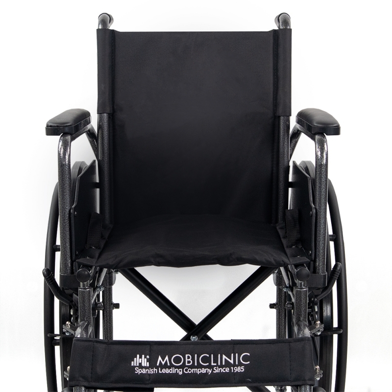- Design: A cadeira de rodas manual tem um design elegante, com estrutura antracite e estofamento em nylon acolchoado. Tem um bolso na parte de trás para transportar objetos pessoais.
