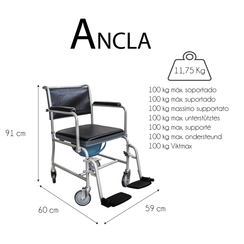 O cadeira com sanita Ancla, é um auxiliar de banho ideal para pessoas com mobilidade reduzida ou que têm dificuldade em ficar limpas ou satisfazer as suas necessidades. Esta cadeira de banho é realmente manejável e muito confortável para se movimentar em casa.