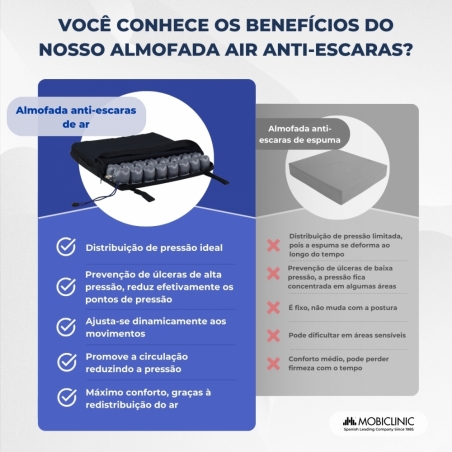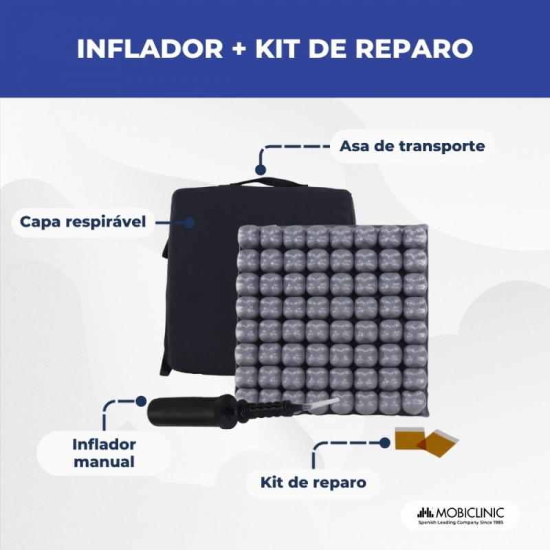 Almofada de ar antiescaras | Qualidade | Confortável | Prática | Ergonômica | Com 1 válvula | Capa respirável | Mobiclinic